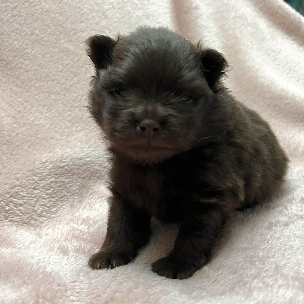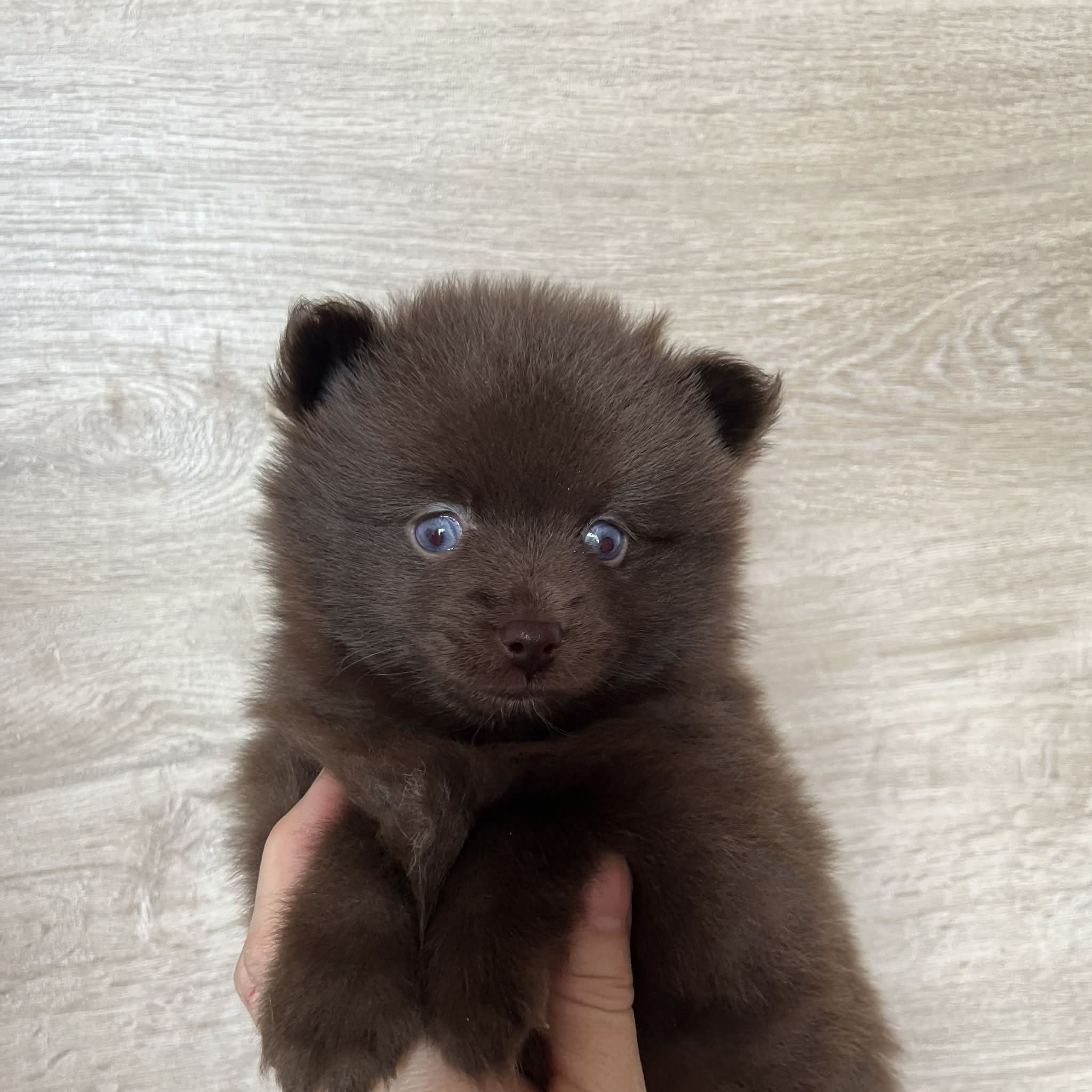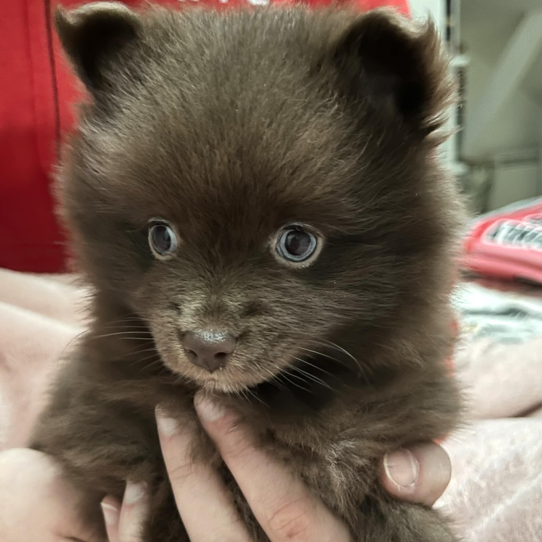A découvrir !!!! 1 femelle Pomsky toy couleur chocolat aux 2 yeux bleus