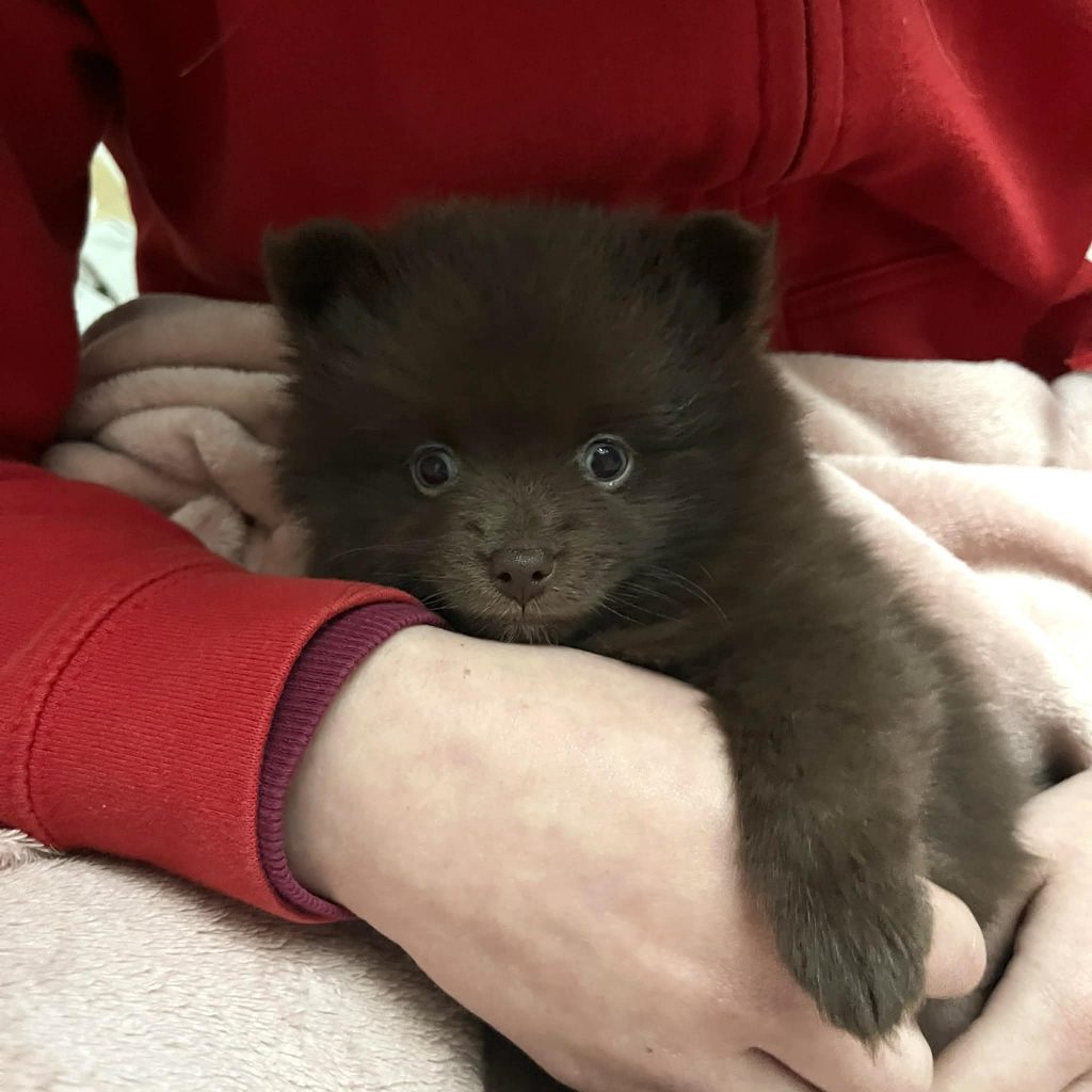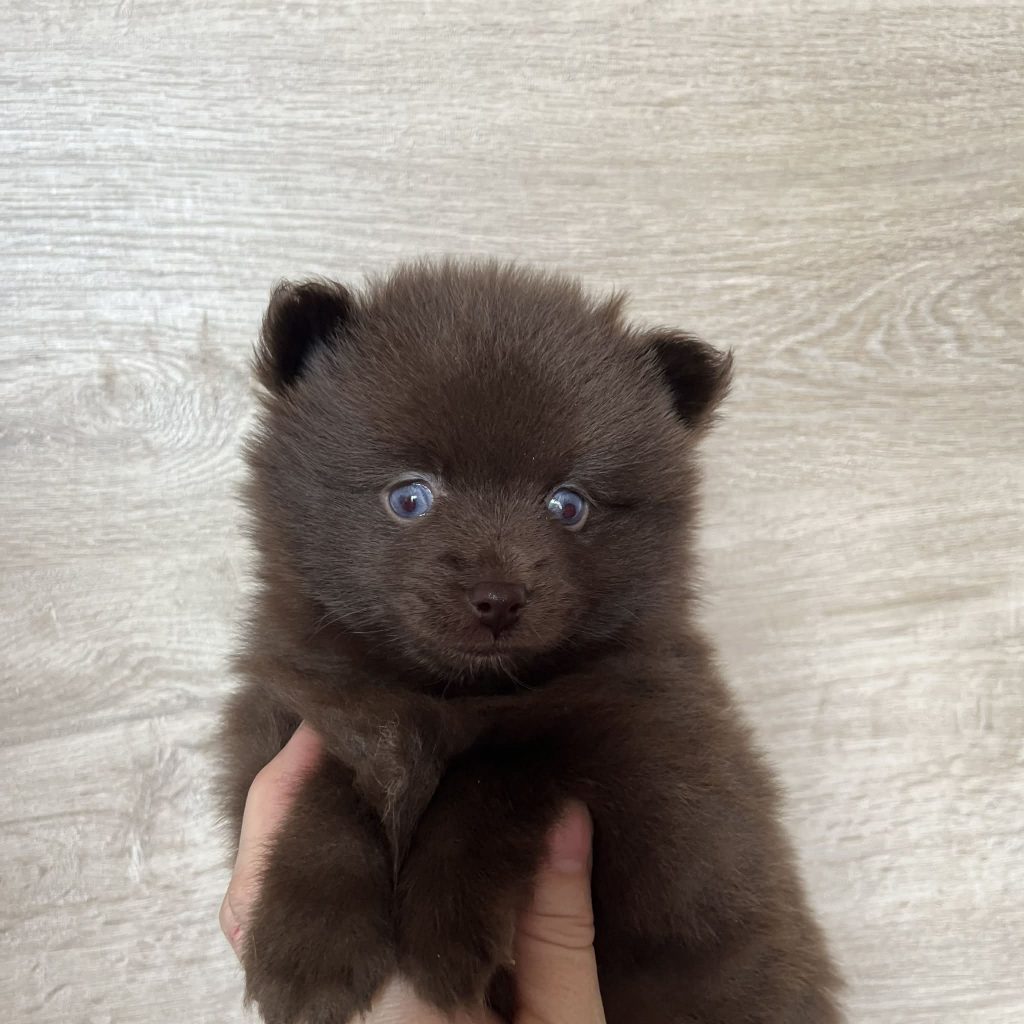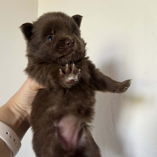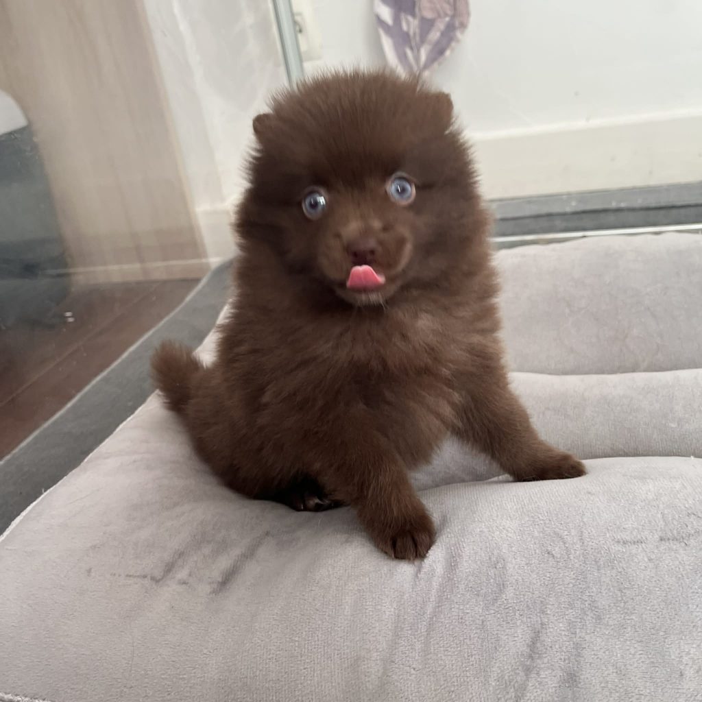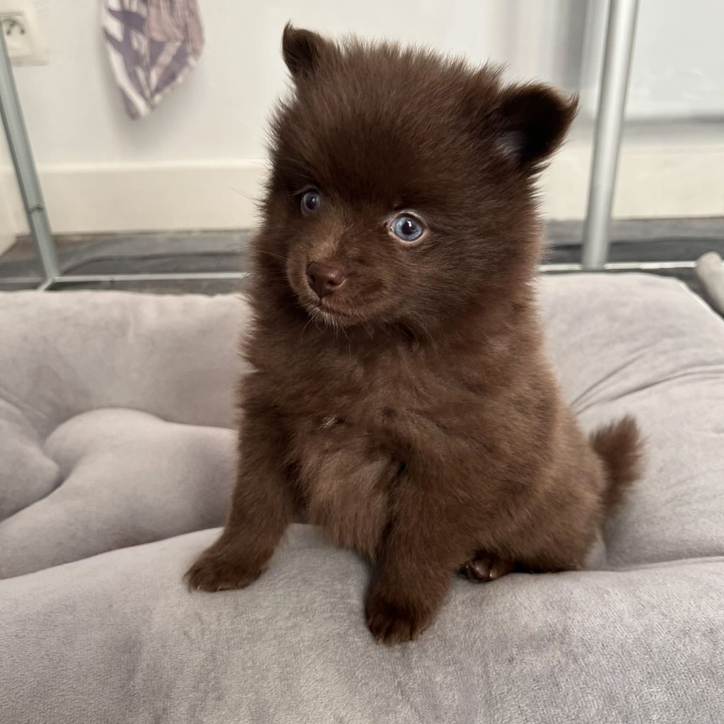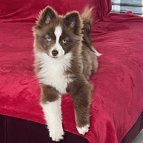 Femelle Pomsky toy couleur chocolat aux 2 yeux bleus – 2 800 euros
